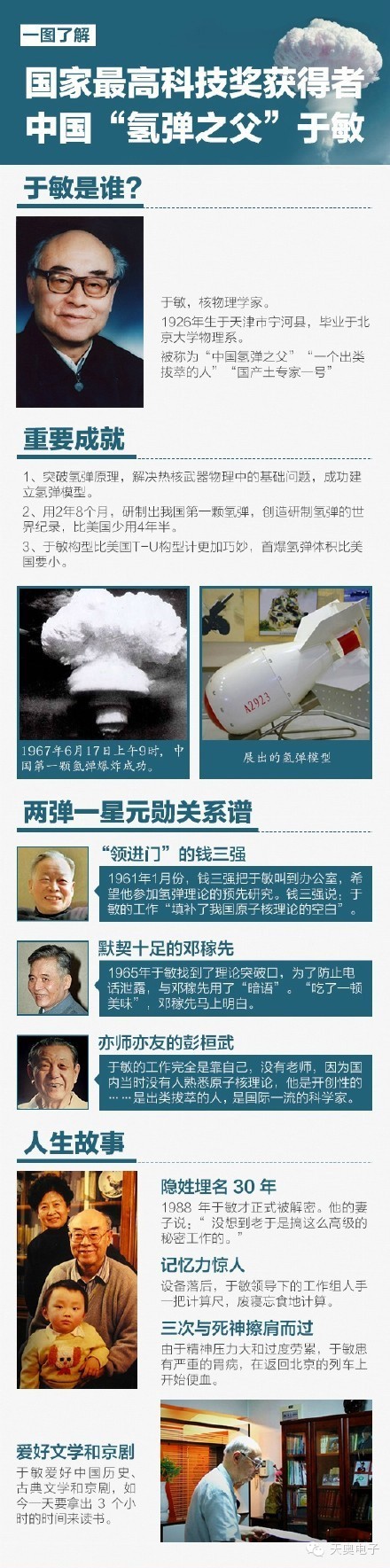 《中国军事百科全书--核武器分册》载:于敏在氢弹原理突破中起了关键作用。