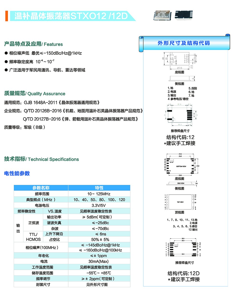 温补晶体振荡器STXO12/12D